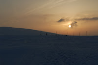 Včera jsem se proběhl po mém oblíbeném krkonošském kolečku (Sněžka, Luční, Liščí). Podmínky pro běh jsou tam teď vynikající, sníh je vetšinou umrzlý a boří se jen minimálně. Od památníku obětem hor jsem se rozhlížel směrem k Dívčím kamenům a Vysokému kolu – tedy tam kudy poběžíme při plánovaném přeběhu Krkonoš (Horní Maršov -> Harrachov). Hodně záleží na podmínkách, ale nejradši bych to šel/běžel v nízkých běžeckých botách (s membránou), případně se sněžnicemi.